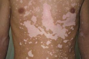 2。先天性色素痣、晕痣:先天性色素痣并发白癜风,白癜风并发晕痣在临床上有许多报道。白癜风可并发晕痣,认为晕痣也是一种“自身攻击”性的疾病。
